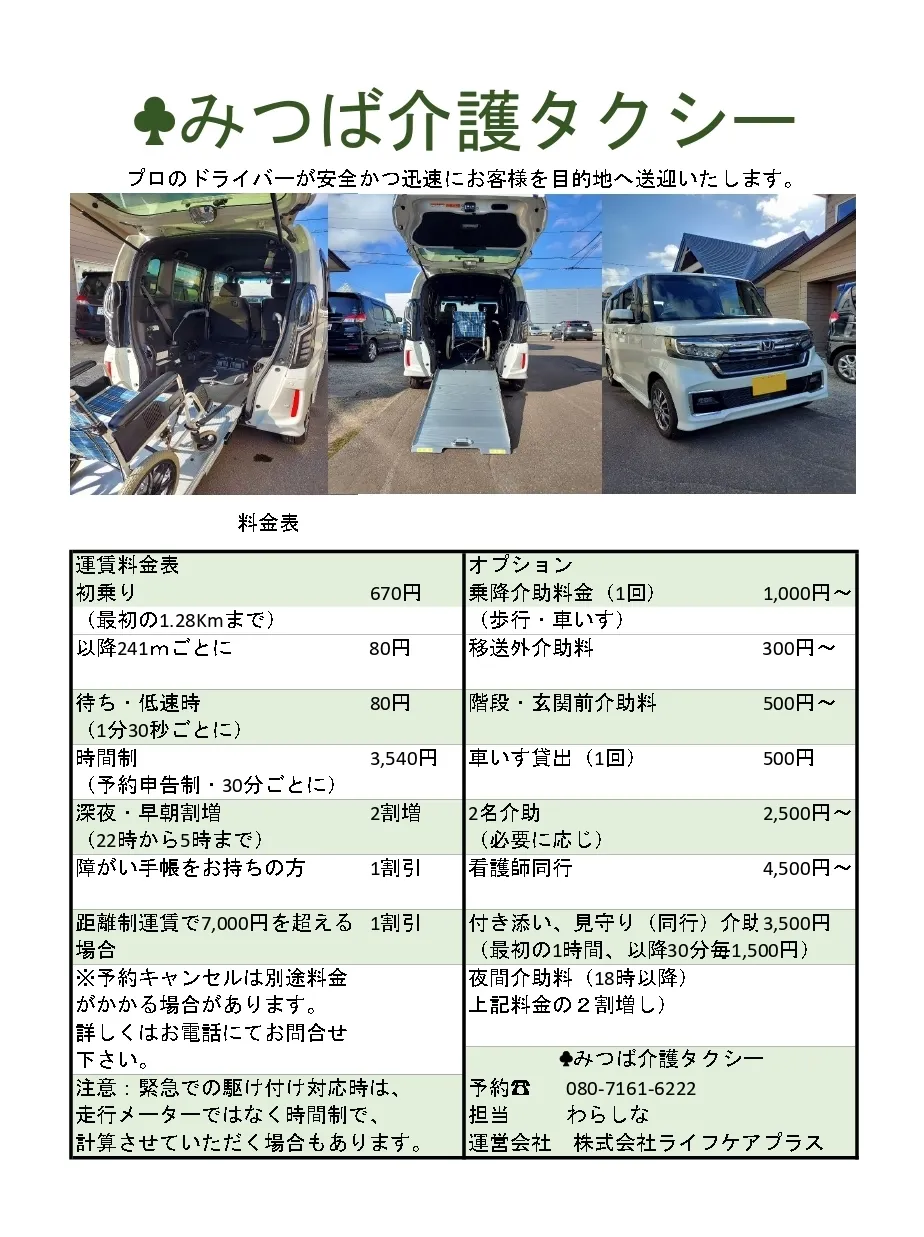 みつば介護タクシー プロのドライバーが安全かつ迅速にお客様を目的地へ送迎いたします。